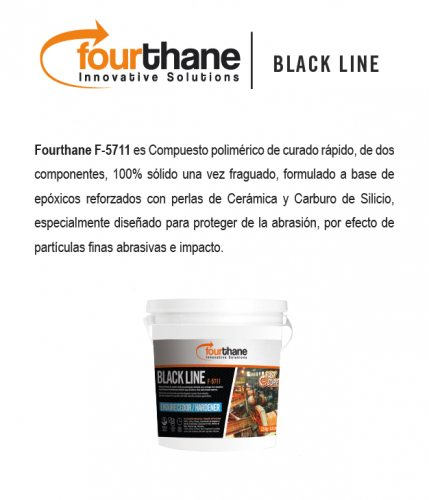 Fourthane Black® Fast Cure No Wear es un compuesto polimérico de curado rápido, de dos componentes sólidos, formulado a base de epóxicos reforzados con pequeñas perlas de Cerámica y Carburo de Silicio, especialmente diseñado para proteger de la abrasión, por efecto de partículas finas abrasivas, equipos de manejo de materiales.