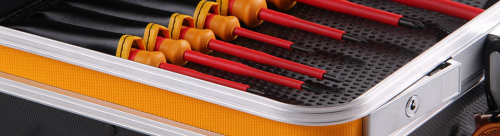 Su estricto apego a las normas, se observa en el cuerpo de cada herramienta con el símbolo internacional 1000 V VDE y no se trata de herramientas enfundadas en plástico rojo sino de un material de alta calidad que se adhiere firmemente a la herramienta con un alto nivel dieléctrico que asegura el aislamiento eléctrico al usuario, además de ser, por supuesto, una herramienta de alta resistencia al esfuerzo mecánico.