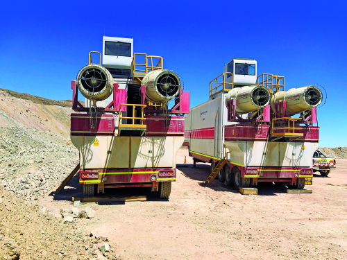 Esto contiene el polvo y evita su propagación al medioambiente, reduciendo las partículas y creando un perímetro húmedo de seguridad para el desarrollo de las faenas en aplicaciones de tronaduras, botadores, chancadoras, pala, caminos y movimiento de tierras.