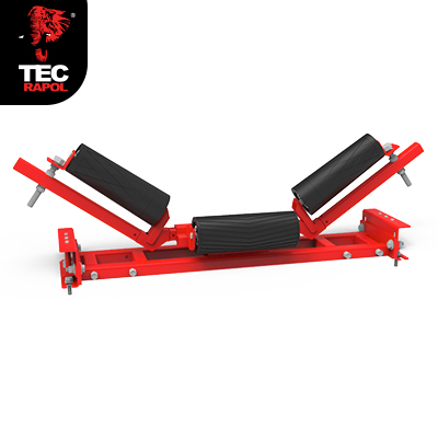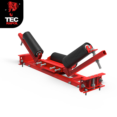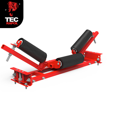 El pivote central, fabricado en acero SAE-1045 y cuidadosamente protegido en la estructura, otorga el movimiento característico del centrador, diseñado para funcionar cada vez que la cinta transportadora se desalinea, alargando de esta manera la vida útil de la correa.
