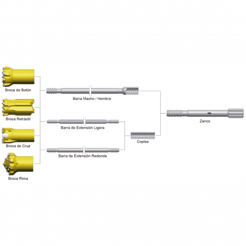 Contamos también con barras M/H, Barras de Extensión M/M, Acoples y Zancos/Barras de Inicio