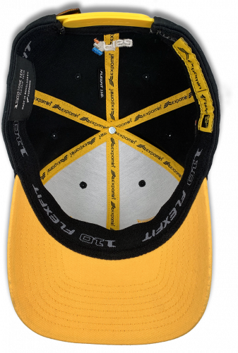 Para este gorro Expomim x Flexfit Chile, quisimos plasmar la elegancia y comodidad del modelo 110 en su versión de visera curva, bajo el programa de fabricación donde los clientes pueden crear gorros con detalles únicos de su marca. El equipo de Fisa eligió como base el color negro, dejando la contra visera, el broche y detalles interiores en color amarillo corporativo.
