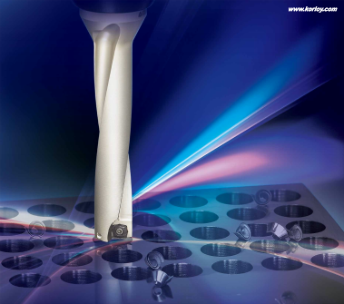 Para resolver este problema, tanto los insertos centrales como los periféricas de KD se diseñaron especialmente para equilibrar la disposición de los insertos con la optimización de los grados para hacer agujeros en cinco diámetros de perforación (5D).