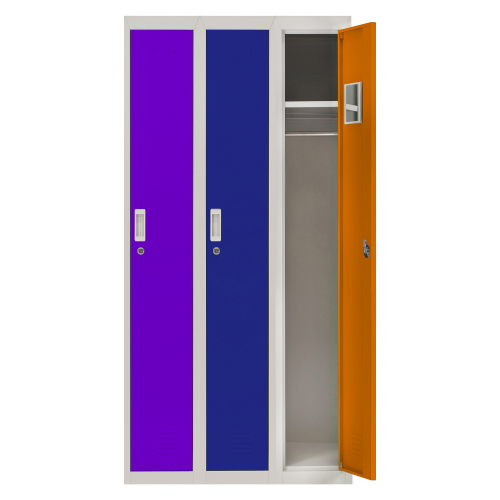 Locker OfficeLock de 3 cuerpos/3 puertas. Esta línea combina factores funcionales y estéticos. Posee los mismos estándares de fabricación que la línea de Lockers Metálicos pero además permite la personalización de los colores de las puertas. Elije tu modelo de locker y pinta las puertas con tu combinación de colores favoritos. Organiza tus espacios de manera eficiente y entretenida. Diseña ambientaciones personalizadas y llenas de color.
