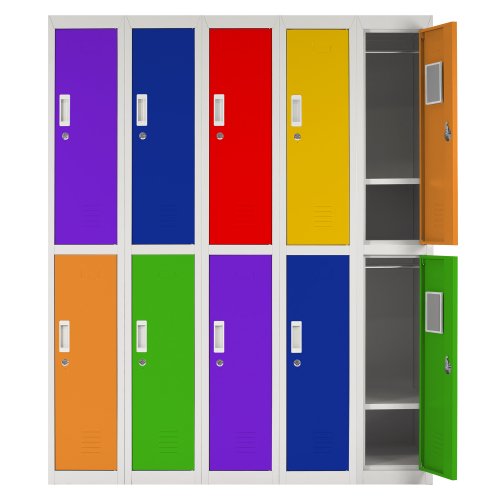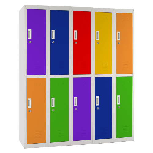 Locker OfficeLock de 5 cuerpos/10 puertas. Esta línea combina factores funcionales y estéticos. Posee los mismos estándares de fabricación que la línea de Lockers Metálicos pero además permite la personalización de los colores de las puertas. Elije tu modelo de locker y pinta las puertas con tu combinación de colores favoritos. Organiza tus espacios de manera eficiente y entretenida. Diseña ambientaciones personalizadas y llenas de color.