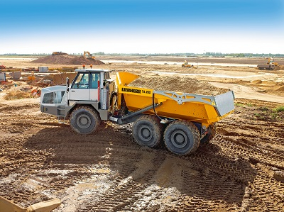 El nuevo TA 230 Litronic está diseñado para las condiciones todoterreno más exigentes. Ningún terreno se resiste al dúmper de Liebherr gracias a su eficiente sistema de accionamiento, la tracción total permanente 6 x 6, el fiable control de tracción y sus macizas suspensiones de eje. Como resultado logramos ciclos sumamente rápidos, ya sea en grandes obras de construcción, en trabajos de extracción o en túneles. El nuevo miembro de la familia Liebherr se siente cómodo allí donde se requieran las más altas exigencias.
