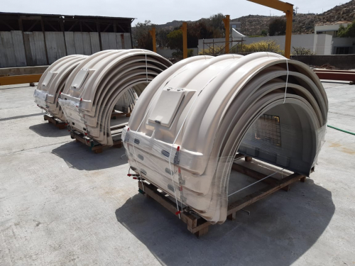 TTM presenta una gran innovación, desarrollada por su socio TAU SPA, en cúpulas de fibra de vidrio para el encapsulado de su sistema transportador. Laminadas al vacío por el método Vacuum Press Infusion (VPI) con resina ignifuga BASF A430 FRV según norma ASTM E-84 clase 1. Son acopladas al sistema transportador mediante rieles y clamps, que garantizan un rápido montaje y desmontaje con la máxima seguridad. Esta tecnología facilita las labores de inspección, termografías, inspecciones de carga y el monitoreo de polines, incorporando ventanas de rápido acceso.