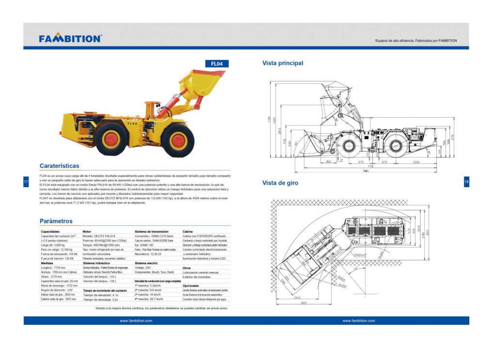 El FL04 highland tipo LHD está equipado con el motor Deutz BF6L914 con una potencia de 112 kW. La potencia del motor es de 71.5 kW a una altitud de 4500 metros, lo que cumple con los requisitos de operación a gran altitud.