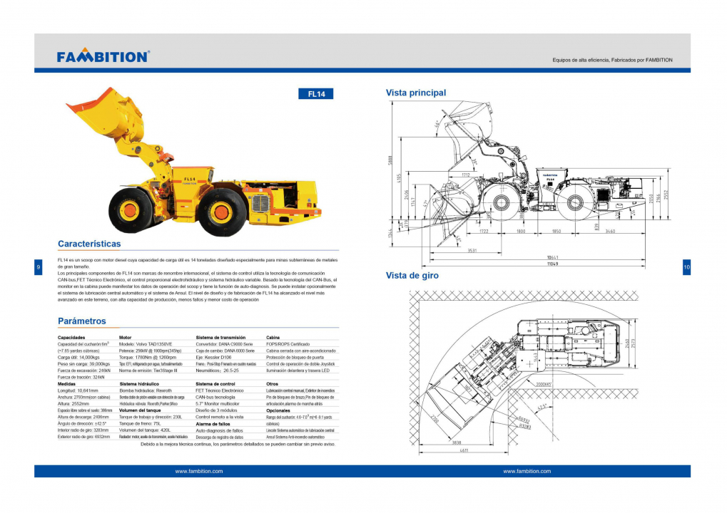 Todos los componentes clave son marcas internacionales reconocidas, el vehículo adopta un control de piloto hidráulico y un sistema hidráulico variable EHC. El sistema de control basado en la tecnología CAN-bus, Fambition Electronic Technician, con pantalla integrada para mostrar los parámetros operativos en tiempo real con autodiagnóstico y resolución de problemas. El sistema de control remoto visual estándar, el sistema de lubricación automática y el sistema de extinción automática de incendios Ansul son opcionales para el cargador.