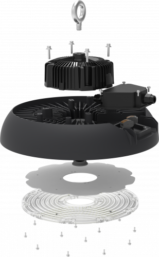 Equipo industrial Led de alto estándar, para uso profesional, con driver dimeable y conector rápido para kite de emergencia.