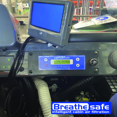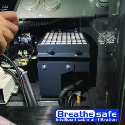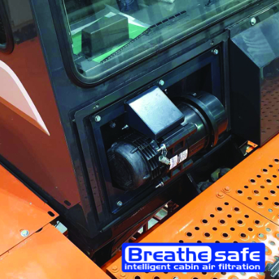 El sistema presurizado de aire fresco de cabina de alta eficiencia de Breathesafe está desarrollado para aislar y proteger a los operadores que trabajan en entornos peligrosos durante la extracción, el procesamiento de minerales y en los sitios de construcción de numerosas sustancias en el aire, por ejemplo, polvo respirable, fibras de asbesto / asbesto natural. (NOA), polvo de minas de carbón, sílice cristalina, dióxido de azufre, DPM, compuestos orgánicos volátiles (COV), emisiones de existencias y otros.