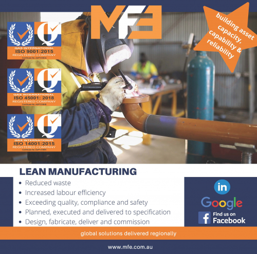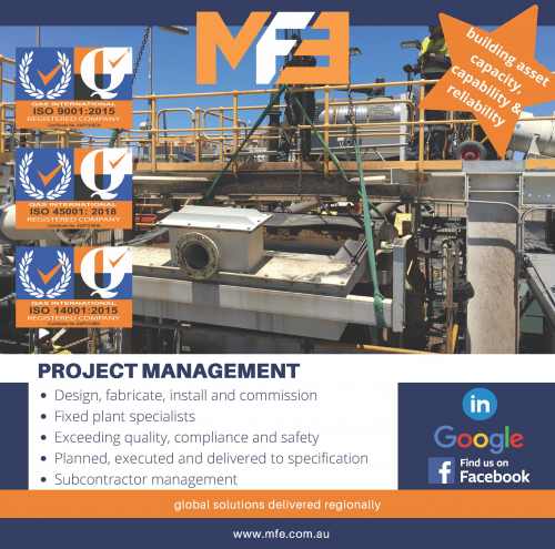 MFE is a Queensland based specilaised services provider focused on delivering solutions to optimise and continuously improve asset capabilities. Our team are experienced in firstly understanding client requirements and then executing a solution fit for purpose. We service mining, energy and water treatment global clients in the areas of project management, maintenance and design, fabrication and installation works. We have a focus on service and quality which we make our priority as evident through our ISO14001, ISO45001 and ISO9001 accreditations.