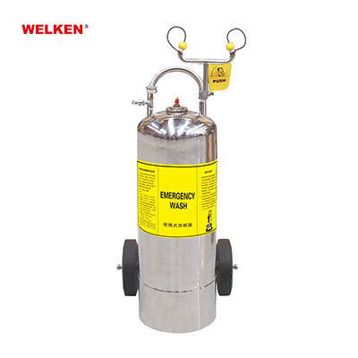 Portable eye wash is very easy to operate, can use more than ten minutes continuously, suitable for outdoor where has no fixed water supply. The portable eye wash is also equipped with a portable cart that can be placed anywhere.