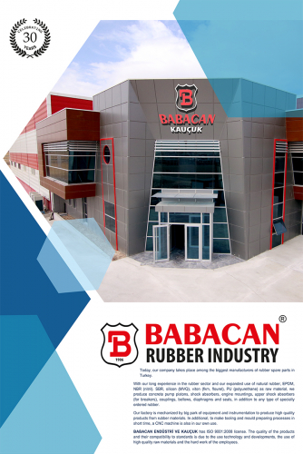 Established in 1986 BABACAN RUBBER INDUSTRY is one of the leading names in the sector of the production of spare parts for mining sector, heavy construction equipment, civil construction machinery, rail systems, defense industry, medical sphere, special machinery and hardware elements with more than 30 years of experience and intensive operation. The new equipped 6.500 m² Babacan Factory located in Yenikent / Ankara / Turkey. In general with Ostim Office-shop 70 staff of Babacan is in service.