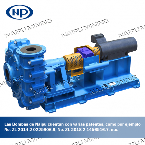 Las bombas para Pulpa de Naipu Mining de alta resistencia a la abrasión, son fabricadas para diferentes aplicaciones de minería metálica y no metálica a nivel mundial. Los principales modelos son la Series NZJM, NZJA, NZJL, NZJF, y NZJV, las cuales se diferencian en función del Flujo (20 a 12.000 m3/h), Presión de Descarga y resistencia a la abrasión. La bomba de pulpa 750NZJA ha sido desarrollada de forma independiente, para responder a requerimientos de empresas internacionales, siendo el equipo de mayor tamaño disponible en China.