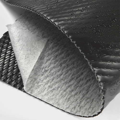 Contains geotextiles of customizable weight thermally bonded to the geonet to provide a complete system for filtration, drainage, protection and separation purposes. It may also contain an impermeable film to protect the structure from infiltrations.