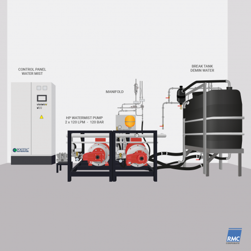 · Extinción por Sistema Water Mist (desde 2 a 8 bombas 120 lpm@120 bar)