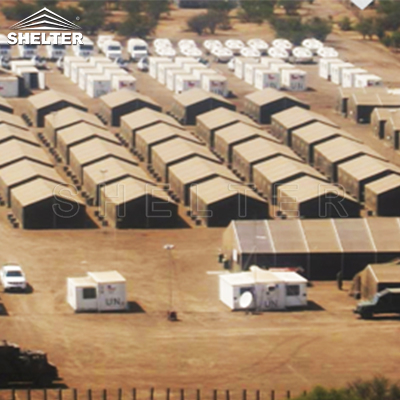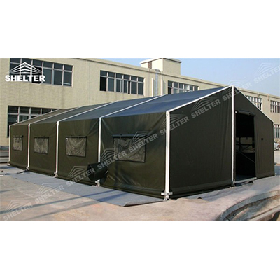 El refugio proporciona la construcción de carpas militares y ayudarlo a diseñar el disposición interna. Se despliega rápidamente y es resistente a la intemperie. Nuestras carpas están diseñadas para ser el almacén del campamento, la cochera para vehículos militares, el cuartel de la carpa temporal, el hospital de apoyo de combate y el área de comedor.