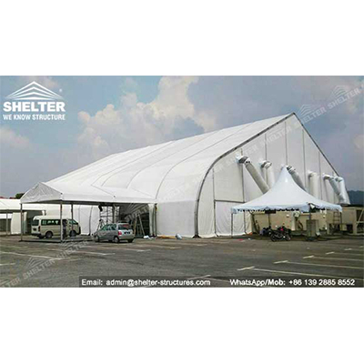 Cuando se usa como ayuda humanitaria, son las carpas ideales para la respuesta de emergencia. Se utilizan ampliamente como campamentos de reasentamiento, carpa de la Cruz Roja y almacén temporal de suministros de socorro.