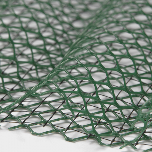 Permanent turf reinforcement mat with built-in reinforcement system. Through a high thickness and open grid structure, this mat avoids sliding of the topsoil over the slope by easing the formation of vegetation and developing a green non-erosionable surface.