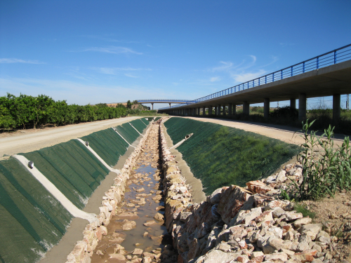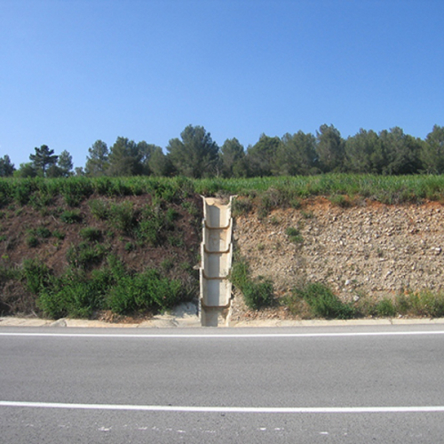 Geomanto permanente de control de erosión con sistema de refuerzo incorporado. Mediante un elevado espesor y una apertura de malla abierta, este manto evita deslizamientos de tierra sobre el talud favoreciendo la germinación de vegetación y conformando una superficie verde no erosionable.