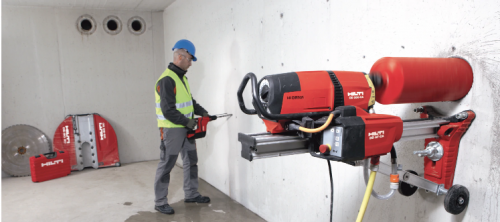 Sistema de taladro con diamante para aplicaciones pesadas con motor de alta frecuencia y unidad de alimentación automática para la perforación con columna de orificios de diámetro medio y grande de hasta 500 mm (19-11/16”)