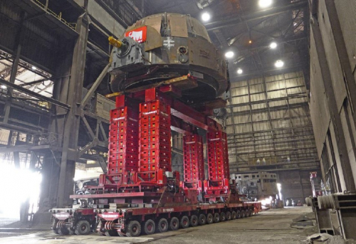 Los Transportadores Modulares Autopropulsados constan de diferentes módulos con líneas de 4, 5, 6 y 8 ejes. La capacidad de carga varía según la versión, con un máximo de hasta 44 toneladas por línea de eje, cada módulo puede equiparse con su propio motor y sistema de control (dirección).