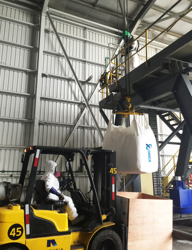 Cianuro de Sodio (NaCN) es un sólido blanco cristalino en forma de briquetas de 46.5 mm de largo, 36.5 mm