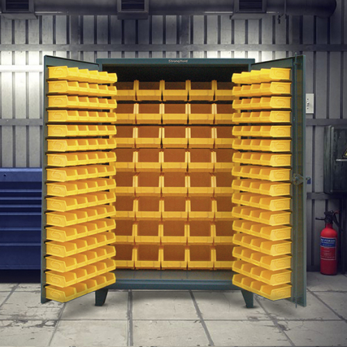 Gabinetes multiuso para almacenaje de alta resistencia, totalmente soldados, con compartimentos en las puertas y en el cuerpo. Organice, almacene y asegure piezas pequeñas en los compartimientos interiores. Con contenedores de almacenamiento para satisfacer prácticamente todas las necesidades de organización y seguridad. Puertas con sistema de bloqueo de 3 puntos y portacandado). Con pies de altura de 15 cms , soldados para proporcionar movilidad y transporte de un área a otra. El gabinete de acero de alta resistencia proporciona protección para todas sus pertenencias y herramientas, ya que está pensado para un exigente uso industrial.