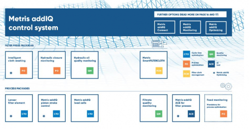 Metris addIQ es el sistema de control de última generación que lee todos los datos de comportamiento del filtro prensa inteligente, lo que hace que las operaciones sean más fáciles y seguras. El IIoT para filtros prensa garantiza que se maximice la productividad.