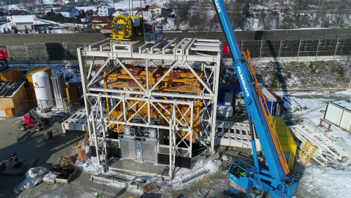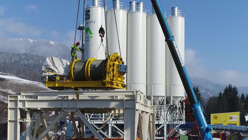 El equipo es usado para el transporte de maquinaria de construcción y materiales desde la parte superior del pique hasta el fondo del pique.