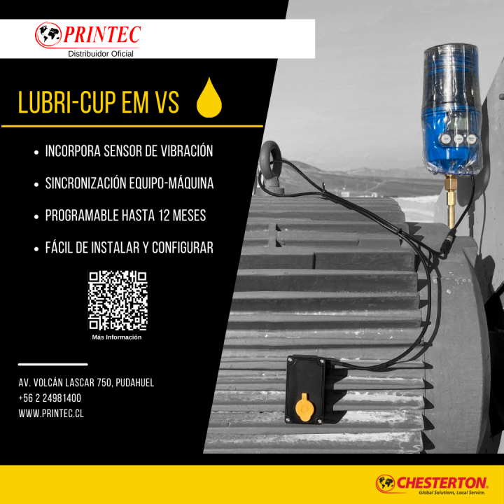 El sistema automático más avanzado de Chesterton Lubricador es micro-procesador controlado y electromecánico. El Chesterton Lubri-Cup ™ EM también se puede combinar con un bloque divisor para lubricar múltiples cojinetes.