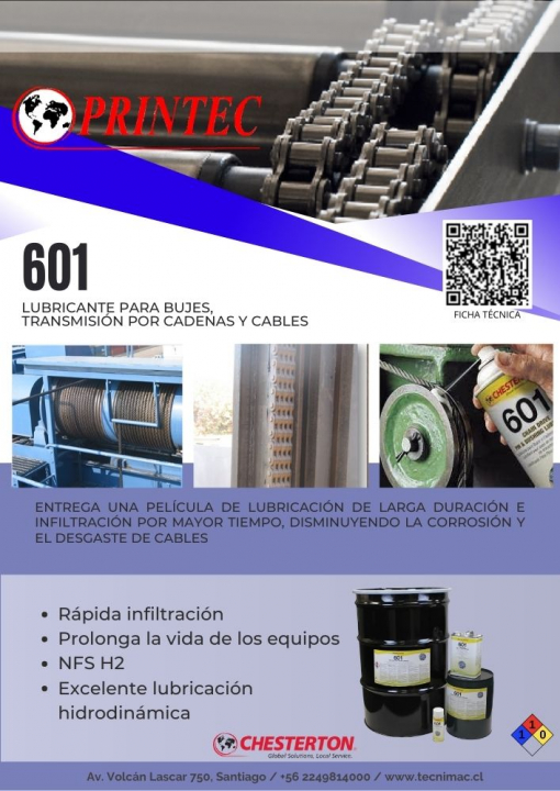 De alto desempeño en temperaturas que oscilan entre los -23°C a 150°C, que lo convierten de primera elección para la lubricación de todo tipo de cadenas, bujes, pasadores, rodillos, y cables, ya que presenta una alta y rápida penetración en pequeños espacios (alta capilaridad).