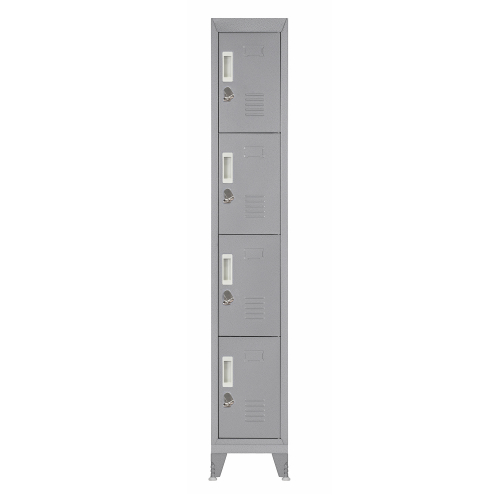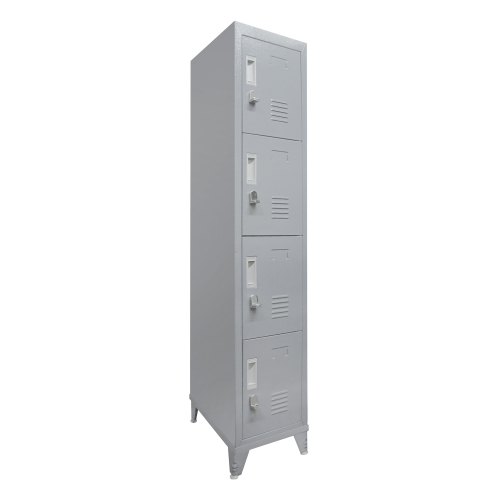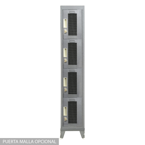 Casillero metálico de 1 cuerpo/4 puertas. Esta línea está orientada a satisfacer las necesidades de custodia para las empresas y sus colaboradores. Cuenta con refuerzos tipo omega a lo largo de las puertas y posee cerraduras tipo portacandados con pestillos de 2,0 mm de espesor. Cada mueble posee patas con regatones ajustables.