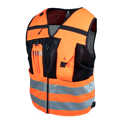 Es un chaleco de materialidad liviana y con alta capacidad de ventilación.