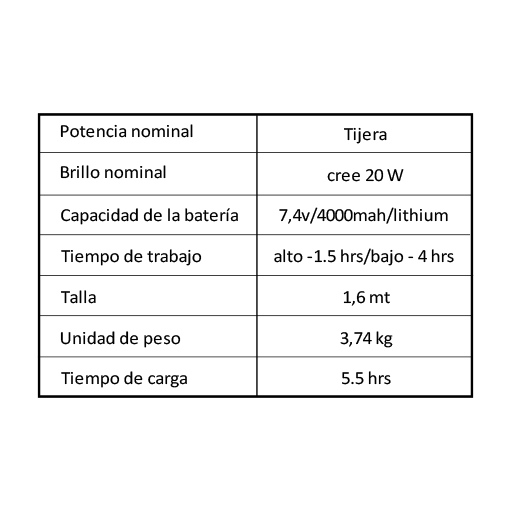 . Altura 1.6 mts (max) / 74.5 cm (plegado).