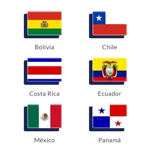 Australia – Bolivia – Brasil – Canadá – China – Costa Rica – El Salvador – EE.UU – Guatemala – Honduras – India – Japón – México – Nicaragua – Puerto Rico – República Dominicana – Unión Europea.