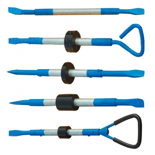 Las barretillas para desatado de roca Han sido desarrolladas con el fin de ser utilizadas en procedimientos de prevención de caída de rocas en operaciones subterráneas. y están especialmente diseñadas para su óptimo desempeño. Este producto fabricado a base de un tubo de aleación especial de aluminio y barras de acero liso o corrugado, prensadas en ambos extremos (puntas). Las barras de acero son tratadas térmicamente y moldeadas de acuerdo al requerimiento del cliente. Adicionalmente, las barretillas pueden presentar soportes de caucho de diferentes diámetros y asas de acero recubiertas con caucho en uno de los extremos. Tipos de puntas disponibles: angular, plana, lápiz. Tipos de asa: triangular y triangular recubierta con caucho. Tipos de seguro: de caucho de diferentes diámetros y longitudes.