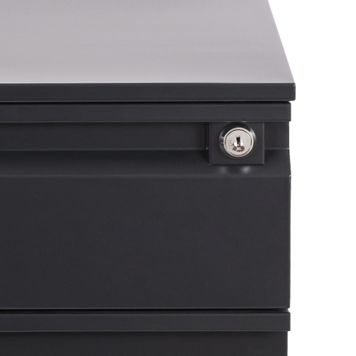 Fabricadas con estructura metálica de acero laminado en frio, poseen 2 cajones y un cajón de archivo para carpetas con interior metálico y sistema antivuelco, que no permite que se abran dos cajones a la vez. Todos los modelos incluyen cierre centralizado con llave, lo que permite cerrar todos los cajones con una sola cerradura.