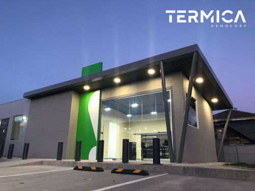 - Muros: Paneles autosoportables de acero galvanizado de 0.5 mm pre pintada con núcleo de poliuretano de 40 mm densidad de 40 kg/m3