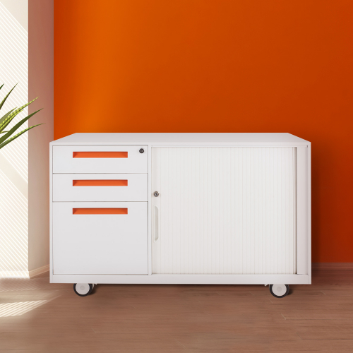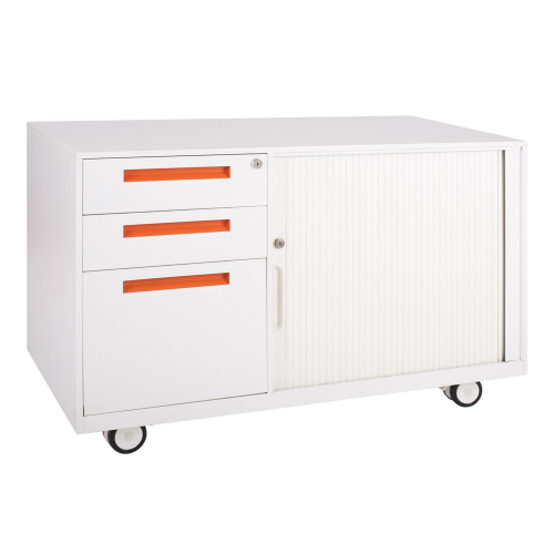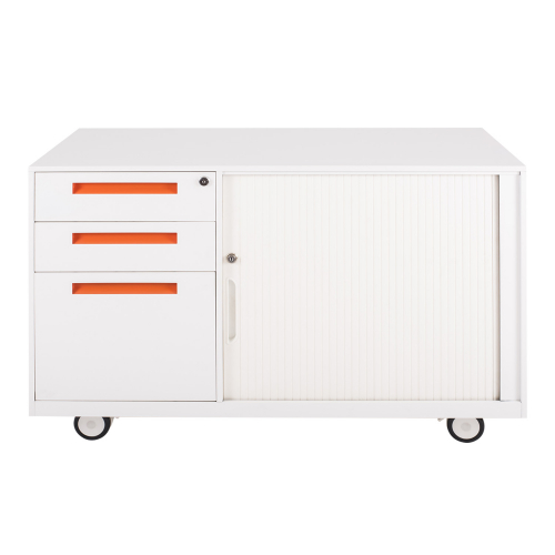 Fabricadas con estructura metálica de acero laminado en frio, poseen 2 cajones, un cajón de archivo para carpetas con interior metálico, gabinete con puerta abatible tipo tambor y sistema antivuelco, que no permite que se abran dos cajones a la vez. Todos los modelos incluyen cierre centralizado con llave, lo que permite cerrar todos los cajones con una sola cerradura.