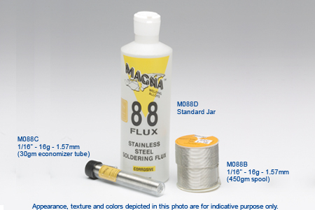 Magna 88: Soldadura inoxidable, certificada grado alimenticio, suelda todos los metales con cautín incluidos los aceros inoxidables, es 30% más conductor que el estaño puro y resiste 14.000 PSI a la tracción.