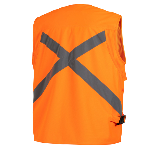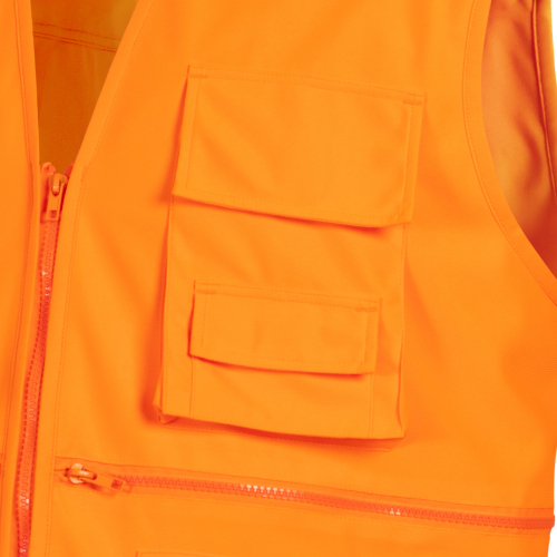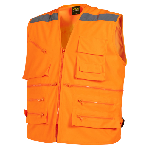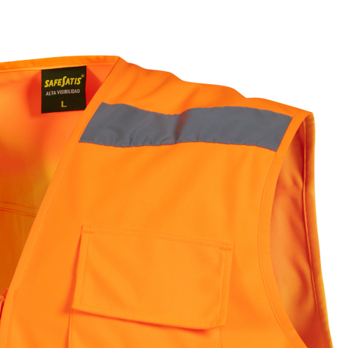 Chaleco Geólogo vial con cinta reflectiva, este producto posee tela suave y liviana lo que hace muy practico y funcional que puede ser usado en diversos rubros, su calidad en gramaje lo convierte en una prenda duradera. Posee cinta reflectiva de 5 cm en el delantero y espalda, esto permite una mayor visibilidad nocturna que aumenta la seguridad del trabajador. Cuenta con cierre en el centro delantero a la vista, desmontable, bolsillo mapero en espalda y dos bolsillos de parche con fuelle y cierre. Tiene caderas regulables con pasador plástico.