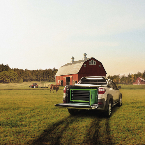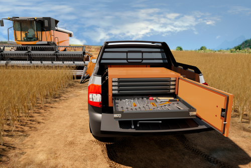 Proyectada para facilitar el mantenimiento en campo, la caja Pickup Box de Tramontina PRO encaja perfectamente en la parte trasera de las pickups, proporcionando más flexibilidad, agilidad y reducción de costos en el mantenimiento de máquinas y equipos. El mecánico sale a la carretera y con las herramientas en las manos, evita largos desplazamientos de las fincas hasta concesionarios o talleres de reparación. La caja posee: 4 anillas para fijación de la caja en la pickup, pies con sistema de amortiguación anti vibración (vibra stop), cerradura reforzada con llave, puerta frontal con goma de sellado que impide la entrada de polvo y agua y traba para la puerta para sitios con viento. Tiene 5 cajones con trabas individuales.